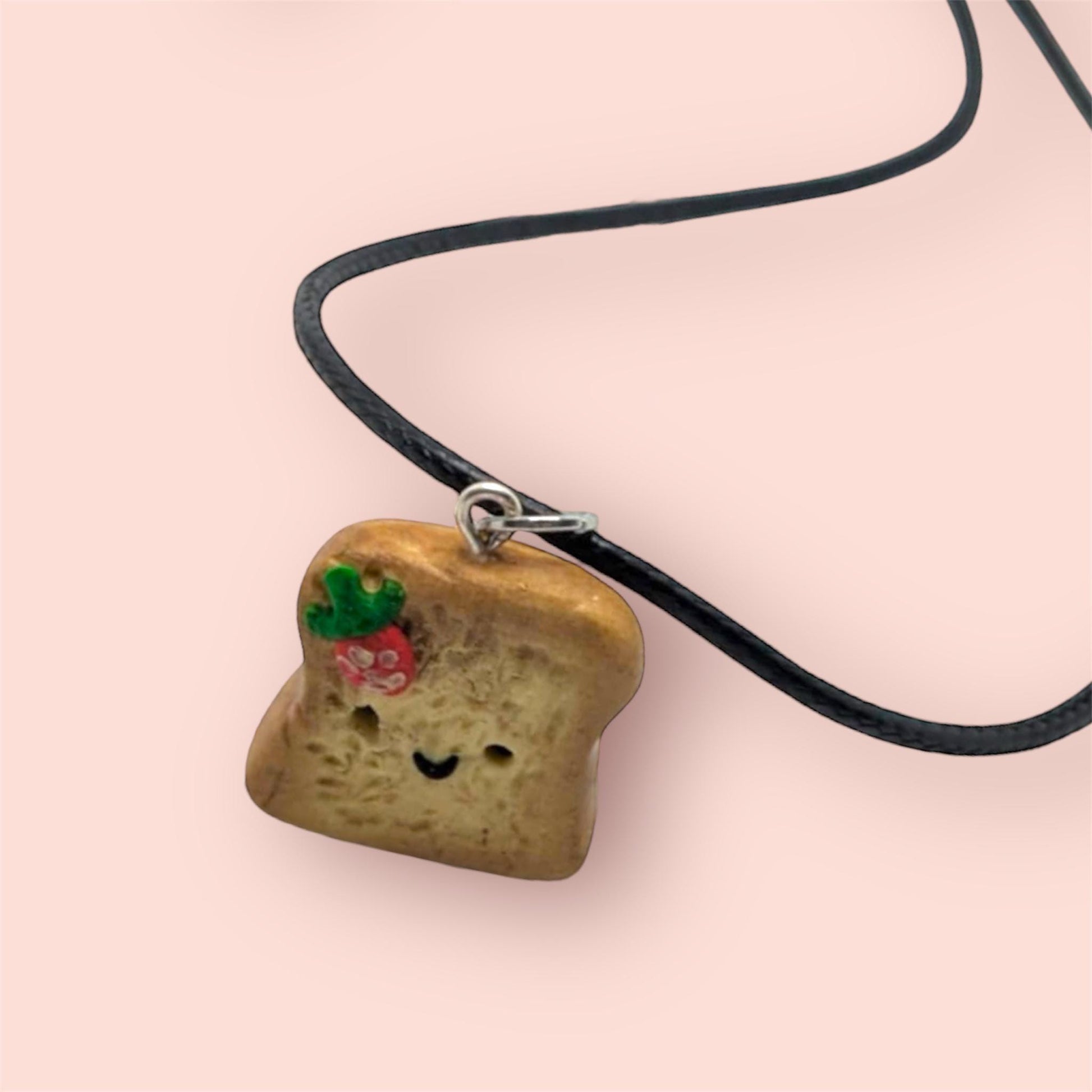 Kawaii Strawberry Toast Necklace: Handmade Polymer Clay Food Jewellery